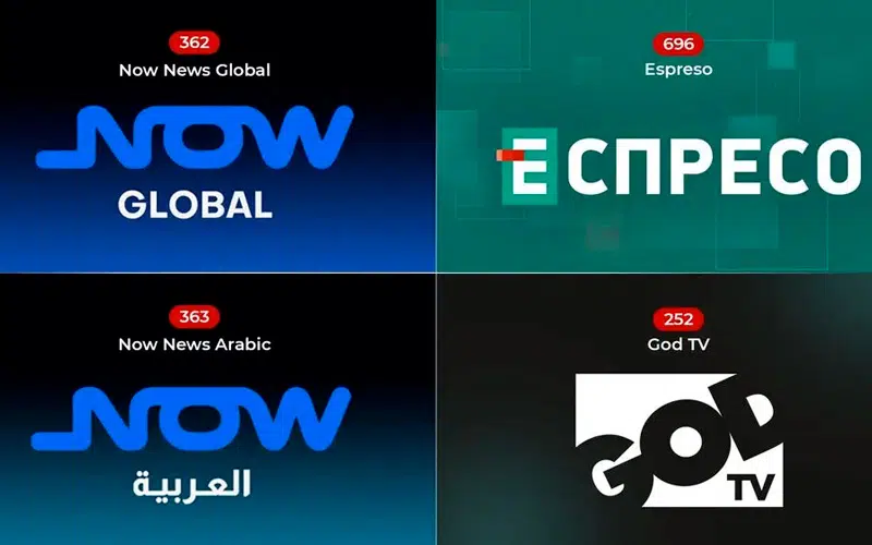 - Now News Arabic (canal 363) : informations en arabe couvrant la politique internationale et l’économie mondiale avec une couverture du Moyen-Orient